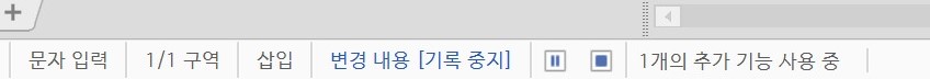 마우스 커서의 모양이 바뀌고, 문서 하단에 아래와 같이 "매크로 기록 일시 중지"와 "매크로 기록 중지" 버튼이 생길 것이다. 스크립트 매크로 기록이 시작된 것이다.