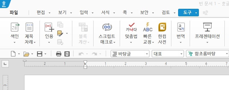 아래아한글을 실행하고 상단의 "도구" 메뉴를 눌러보자.