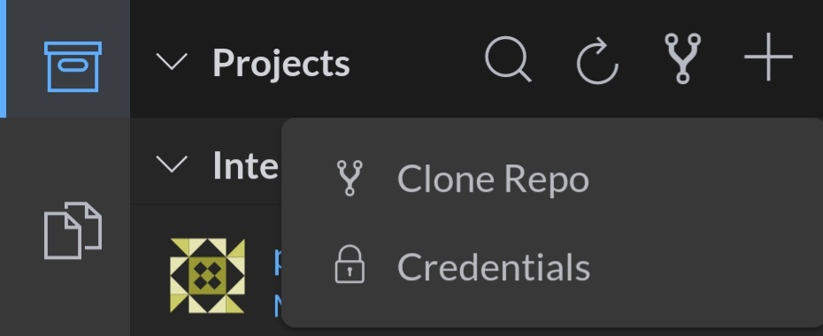 눌러보자. Clone Repo와 Credentials 메뉴가 있다.