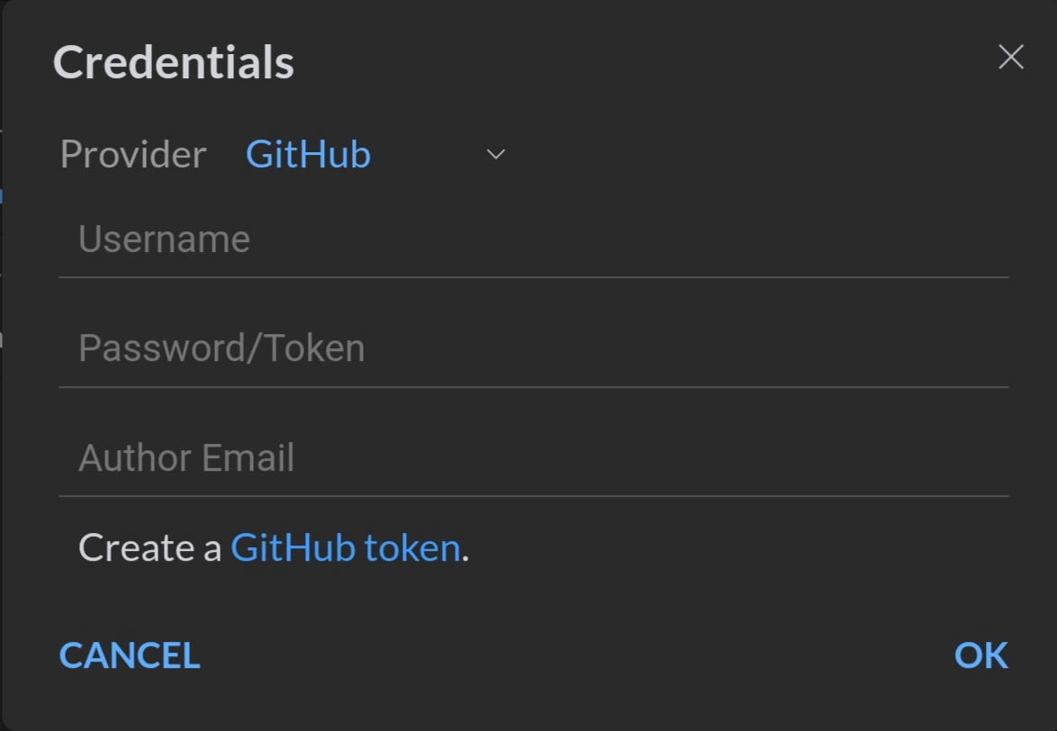 깃허브에서 내 레포지토리를 클론해 오려면 우선 spck 앱에서 깃허브에 접근하기 위한 계정 정보를 Credentials에 입력해줘야 한다.