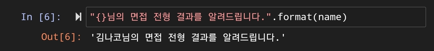 문자열 포맷 앞에 f를 붙이는 대신, 뒤에 .format()을 붙인다.