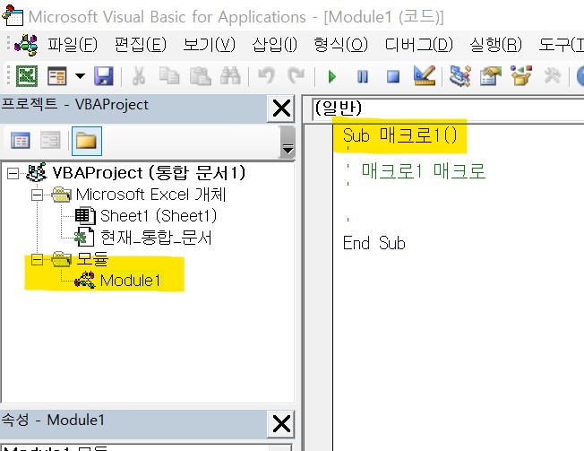 | [참고] 참고로 비주얼베이직 창을 띄워 놓고 매크로를 기록해보면, 실시간으로 코드가 기록되는 것을 볼 수도 있다. |