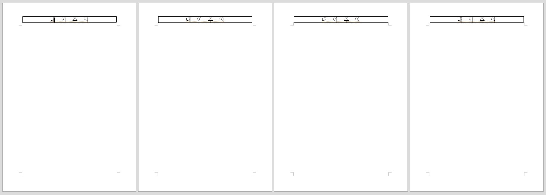 이는 이미 머리말이 들어간 상태에서도 같은데, 위의 상태에서 4쪽에서 머리말을 다시 넣고 아무것도 입력하지 않면 아래처럼 4쪽의 머리말은 비어 있게 된다.