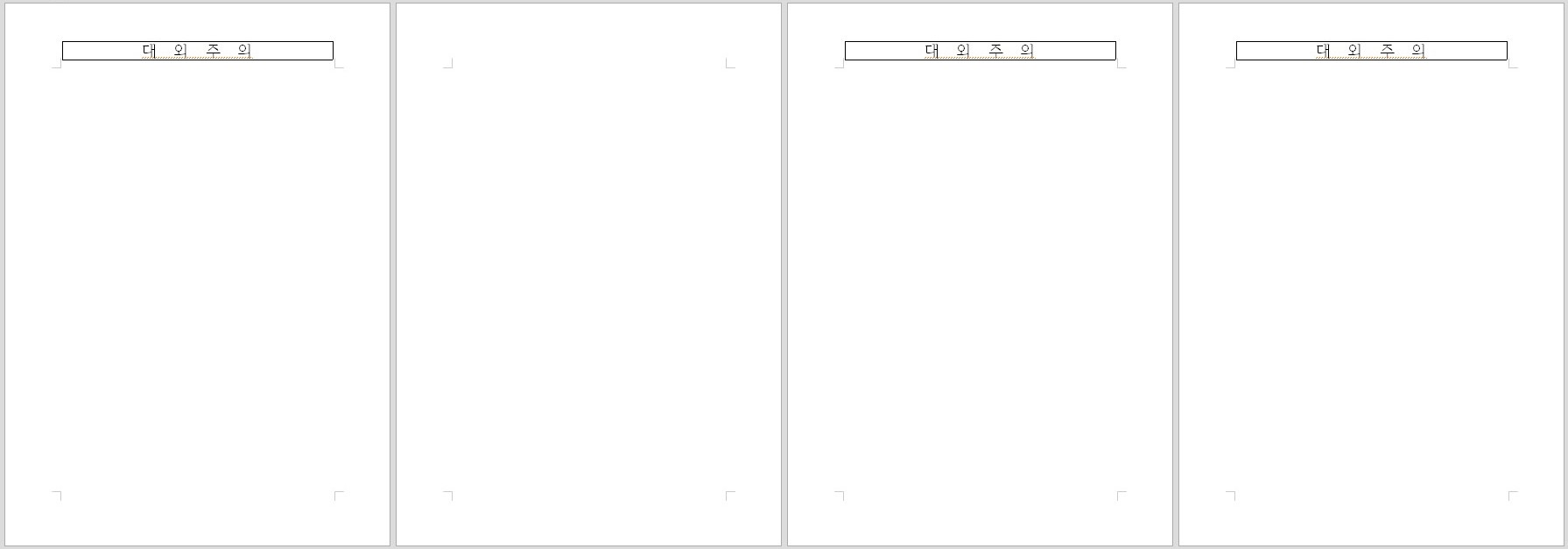 필자는 주로 보안 관련 경고 문구를 삽입하기 위해서 머리말을 사용하는데, 보통 이러한 문구는 문서 전체에 적용하기보다는 특정 부분에만 적용을 하게 된다. 보안이 필요한 부분에만 하면 되기 때문이다.