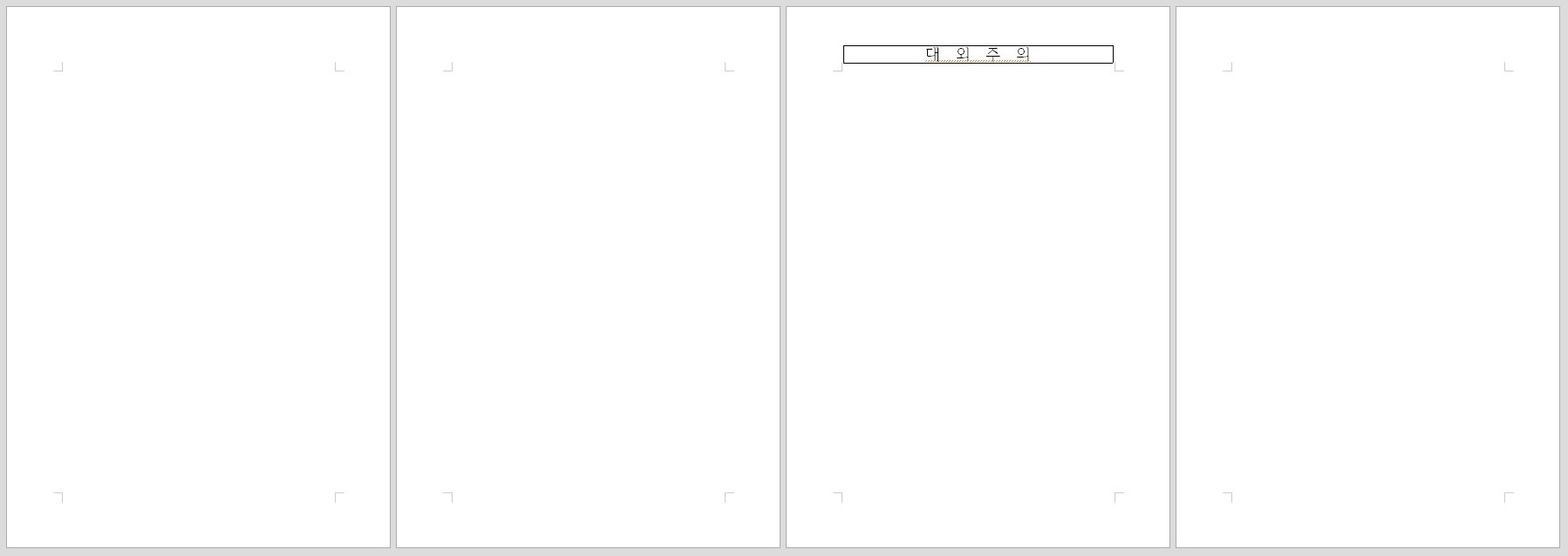 그렇다면, 서두에서 본 것처럼 1, 3, 4쪽에 경고문구를 넣고, 2쪽은 비워두고 싶다면 어떻게 하면 될까?