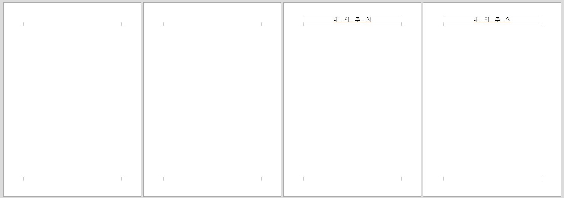 이는 이미 머리말이 들어간 상태에서도 같은데, 위의 상태에서 4쪽에서 머리말을 다시 넣고 아무것도 입력하지 않면 아래처럼 4쪽의 머리말은 비어 있게 된다.