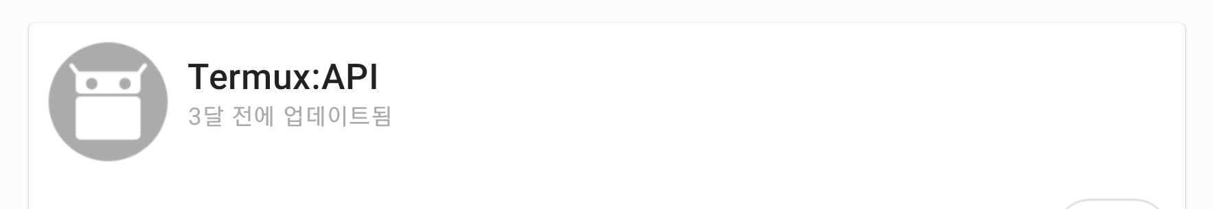 F-droid에서 termux를 설치했다는 것을 전제로, F-droid에서 termux-api를 검색해 설치하자. termux와 마찬가지로 apk 파일 형태로 제공된다.