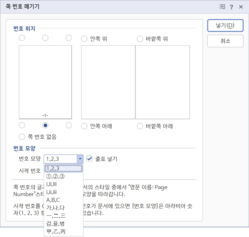 2. 쪽 번호 서식 변경하는 방법