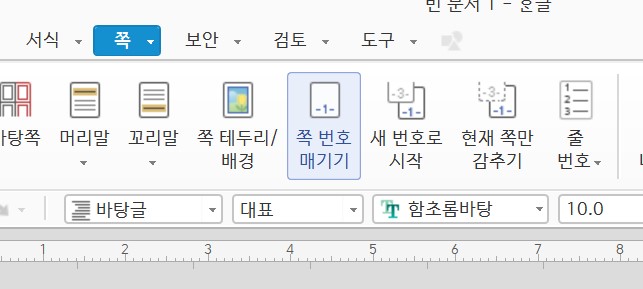 한글 문서에 쪽 번호를 넣는 방법은 간단하다.
