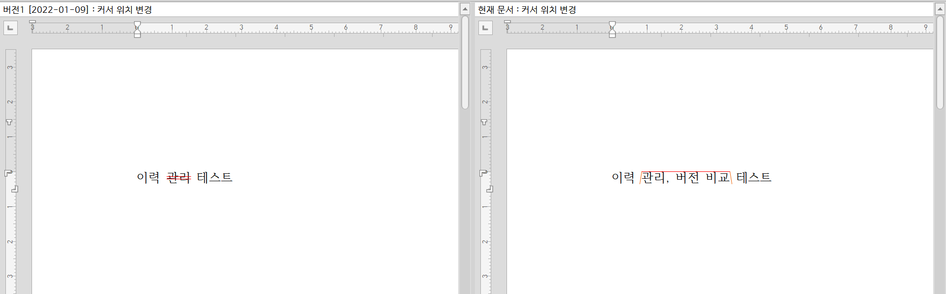 그러면 아래처럼 수정 전과 후의 문서를 서로 다른 창에 나란히 보여 준다.