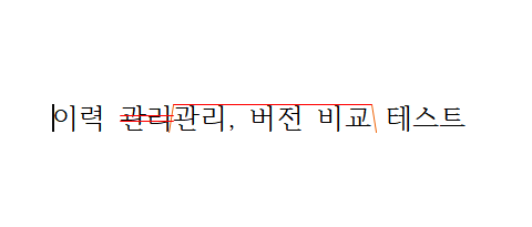 버전 비교를 실행하면, 아래와 같이 버전 비교 화면이 열리면서 수정된 내용들을 교정 부호로 모두 표시해준다.