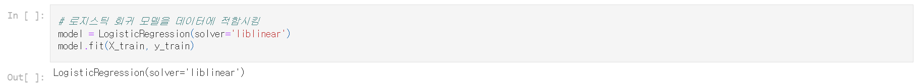 투표 분류기가 모델을 개선할 수 있는지를 보려면 먼저 로지스틱 회귀 모델의 단독 실행 결과를 봐야 한다.