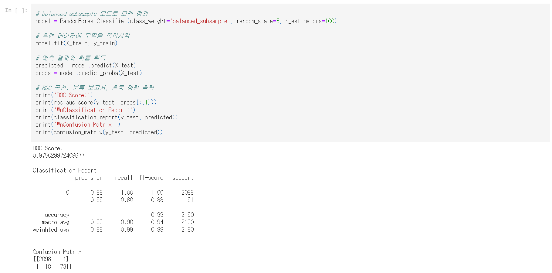 - 분류기의 class_weight를 Balanced_subsample로 설정