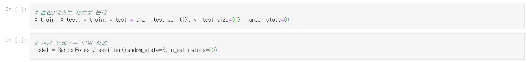 - RandomForestClassifier를 정의하고 random_state를 5로 둠(모델 간 비교를 위함)