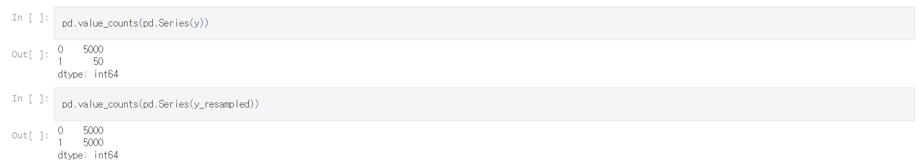 - 소수 클래스를 오버샘플링하여 불균형을 조정하는 또 다른 방법