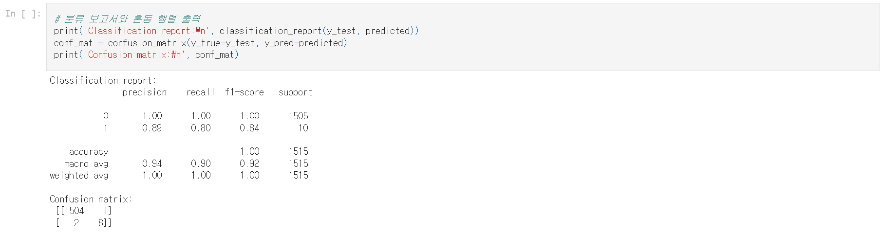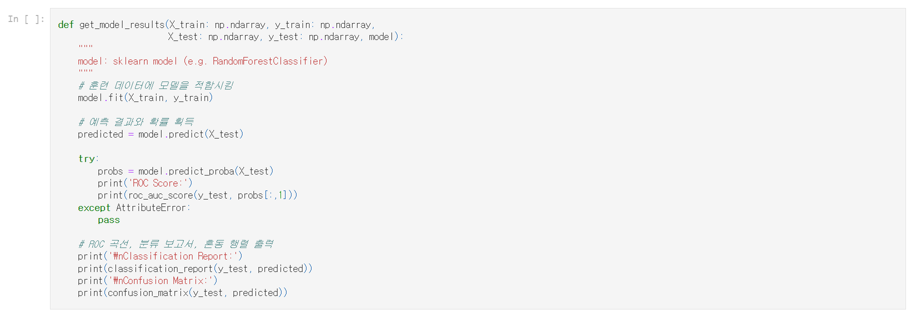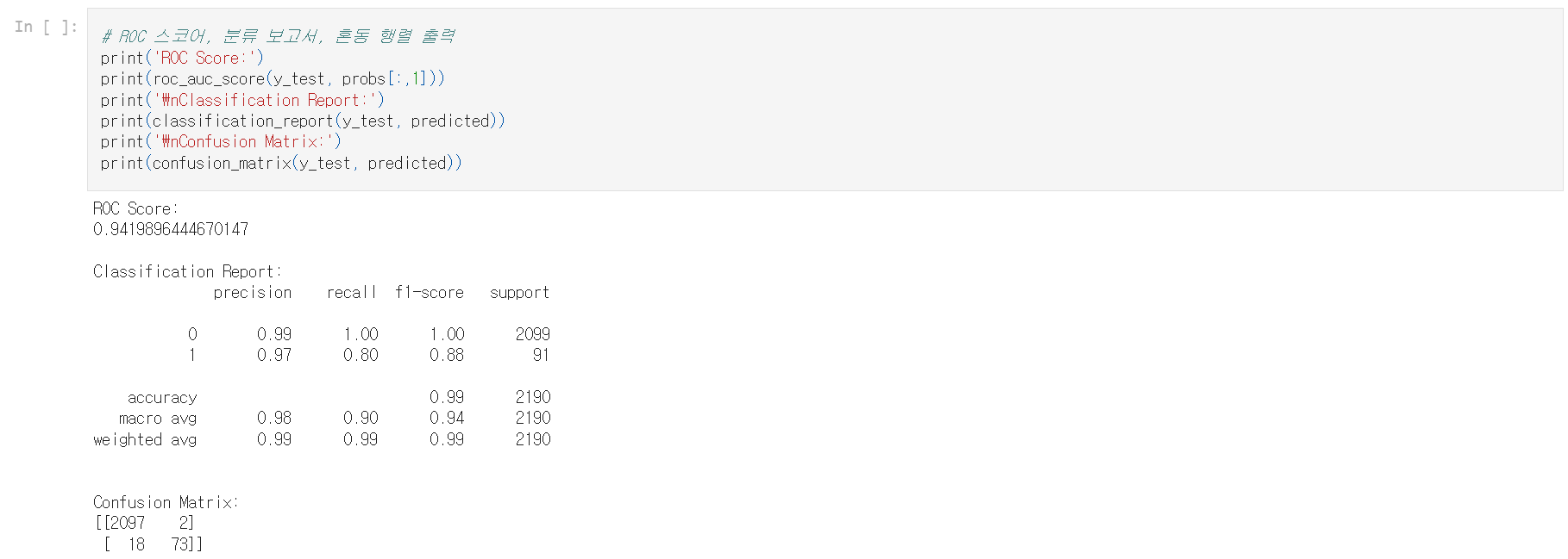 - roc_auc_score, 분류 보고서 및 혼동 행렬 출력