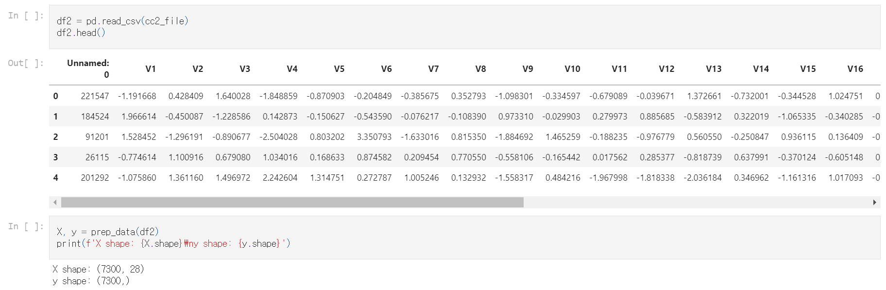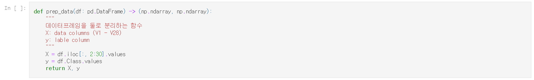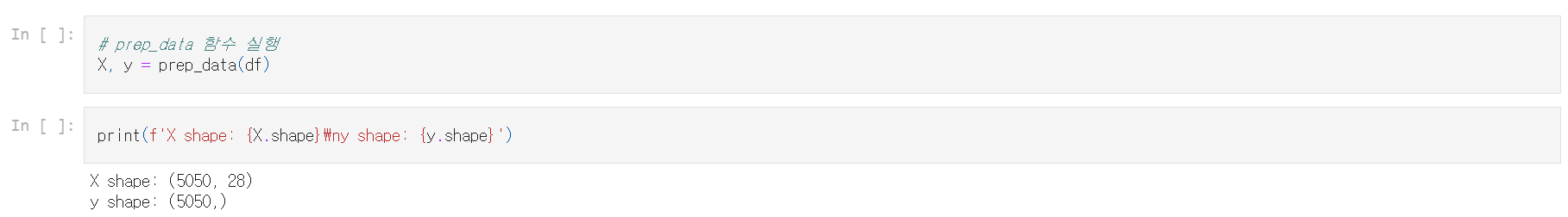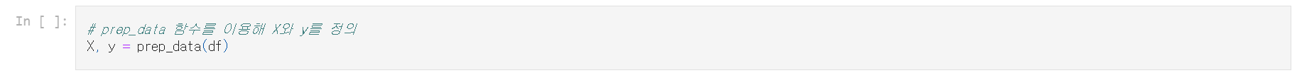- df에서 prep_data() 함수를 사용하여 X와 레이블 y를 생성
