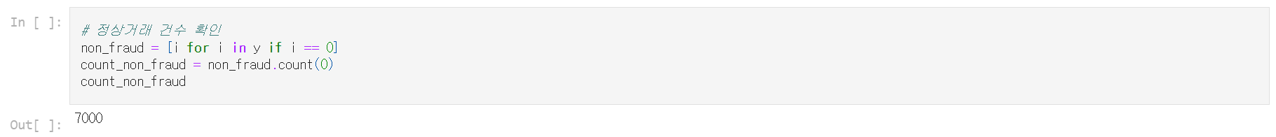 - 부정거래 사례에 맞추기 위해서 정상거래 샘플에서 무작위로 추출(그림 참조) - 소수(부정거래) 클래스의 오버샘플링