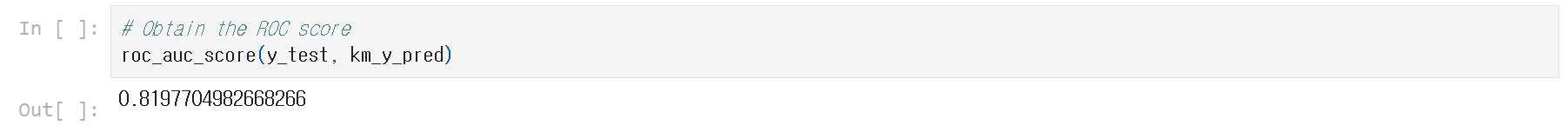 - 테스트 레이블과 예측 레이블에서 ROC 곡선 아래의 면적을 산출