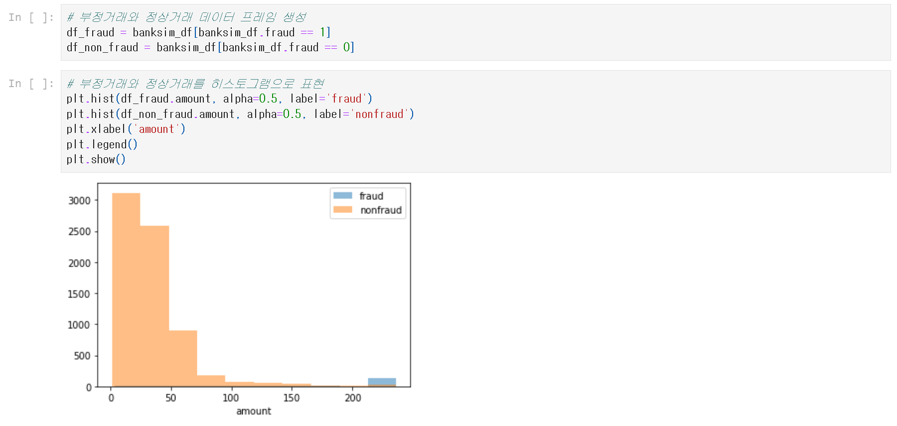- 부정거래와 정상거래, 두 개의 데이터프레임 생성