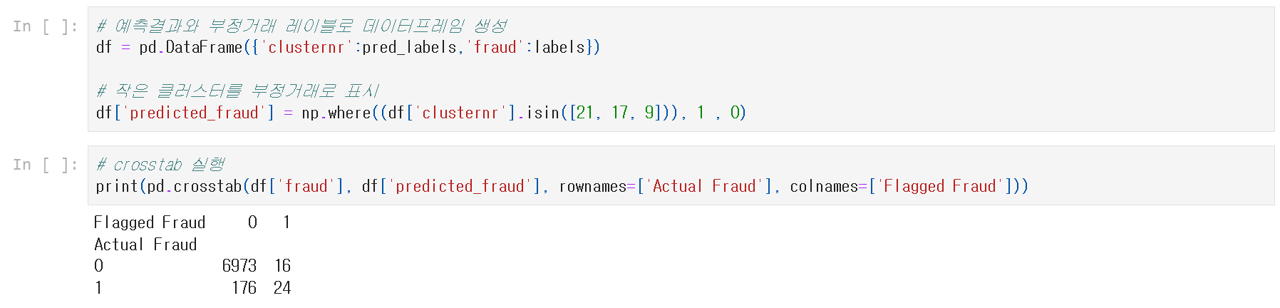 - 마지막으로 실제로 부정탐지에 효과적인지 여부를 원래 레이블로 확인