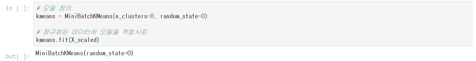 - sklearn에서 MiniBatchKMeans를 불러옴