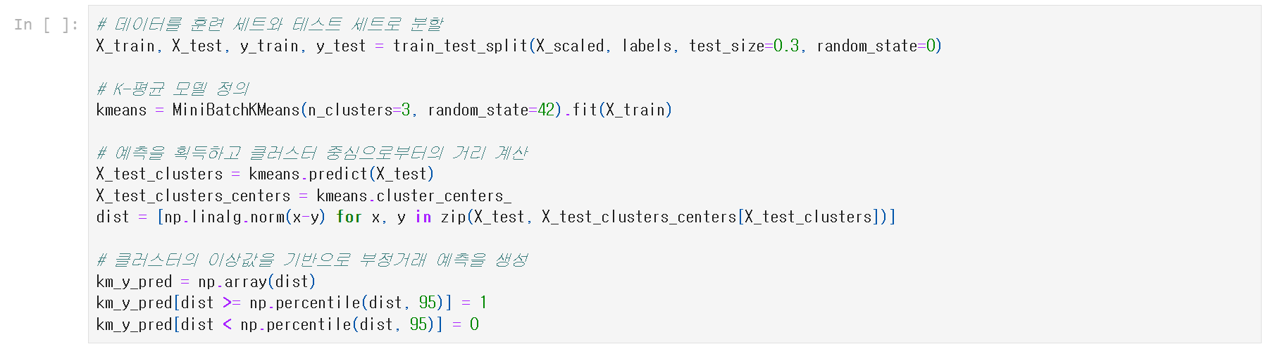 - 테스트 데이터에서 예측을 실행하고 클러스터 중심을 획득