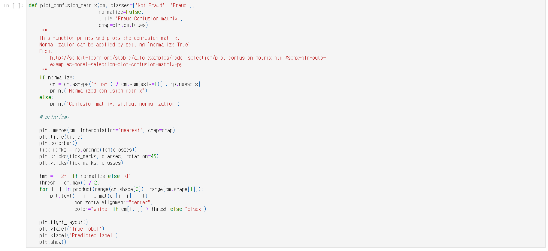 신용카드 부정 탐지에 관한 머신러닝 예제를 아래 글에 이어서 계속 살펴보자.