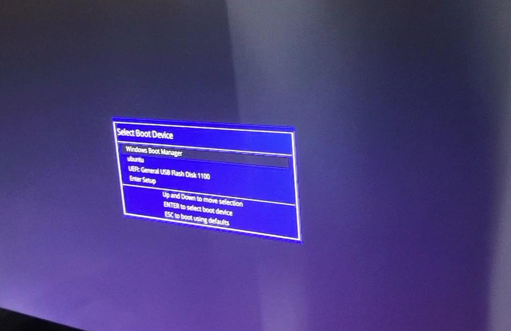 그러면 아래와 같이 부팅 옵션을 선택하라는 표시가 나온다. 윈도우 부팅 매니저와 함께 앞에서 만든 부팅 USB가 표시될 것이다. 그것을 선택한 뒤에 엔터를 누르면 리눅스민트로 부팅이 된다.