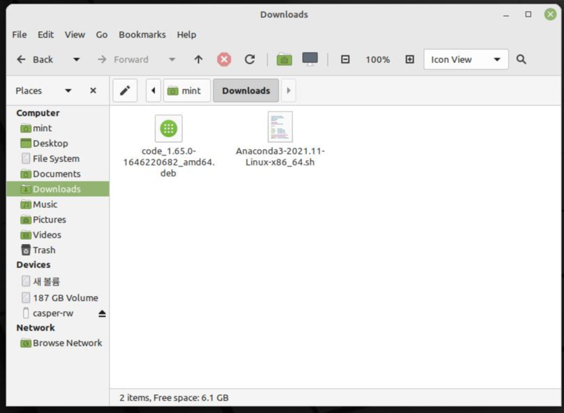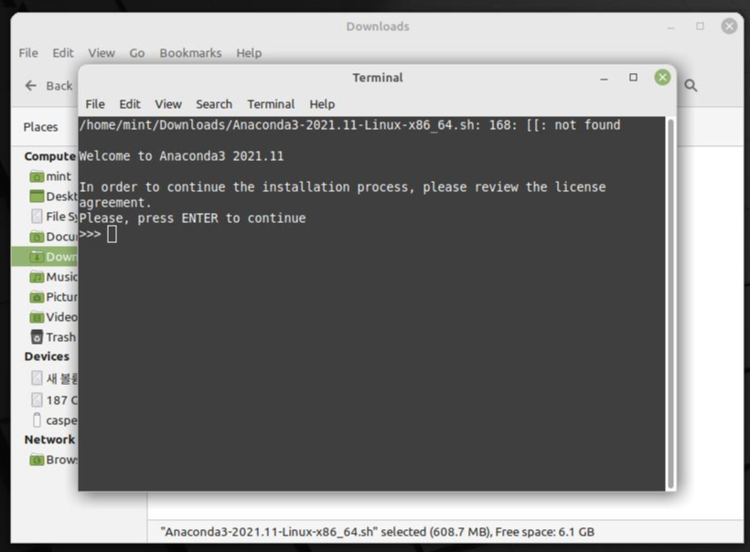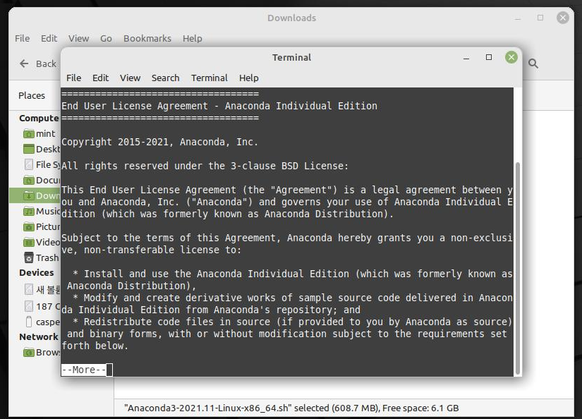 확장자가 .sh인 배쉬 스크립트가 다운로드되었을 것이다. 이 파일을 실행해준다. 파일 탐색기로 파일이 저장된 폴더를 열어 실행해도 되고, 터미널을 열어 bash 명령어로 실행해도 된다.