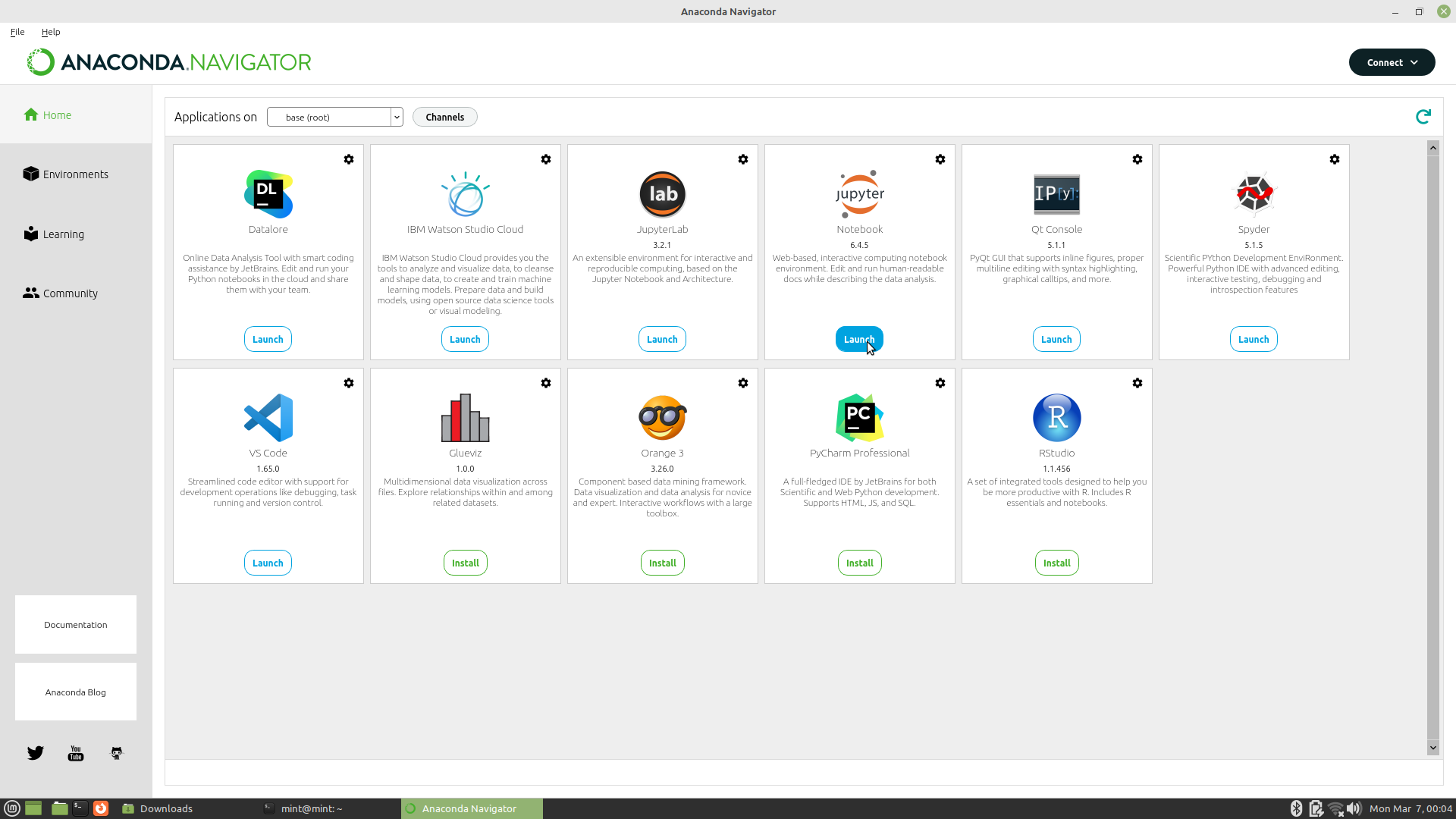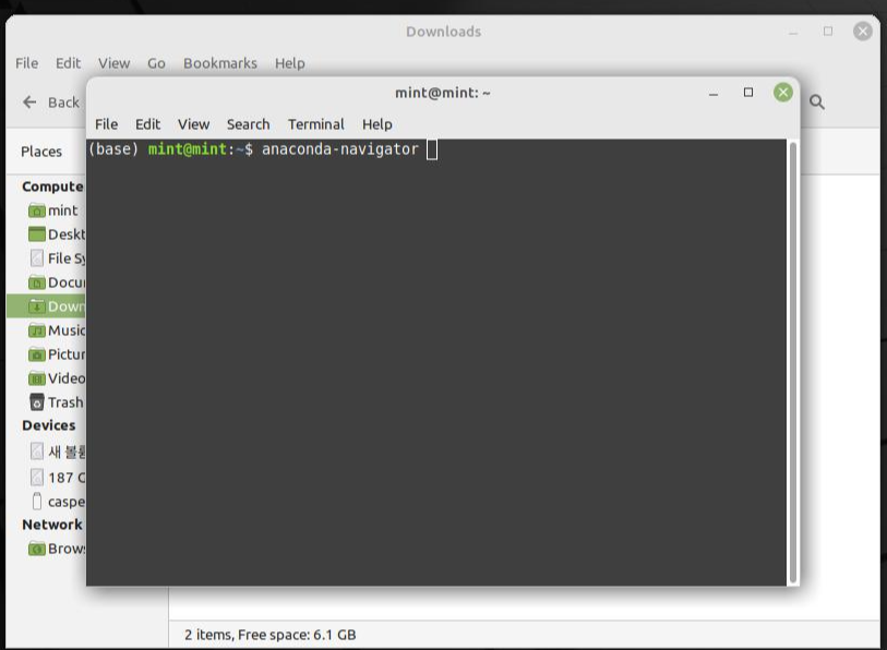 아나콘다가 활성화되었다면 명령어를 입력해 잘 작동하는지 확인해 보자. anaconda-navigator를 입력한다.