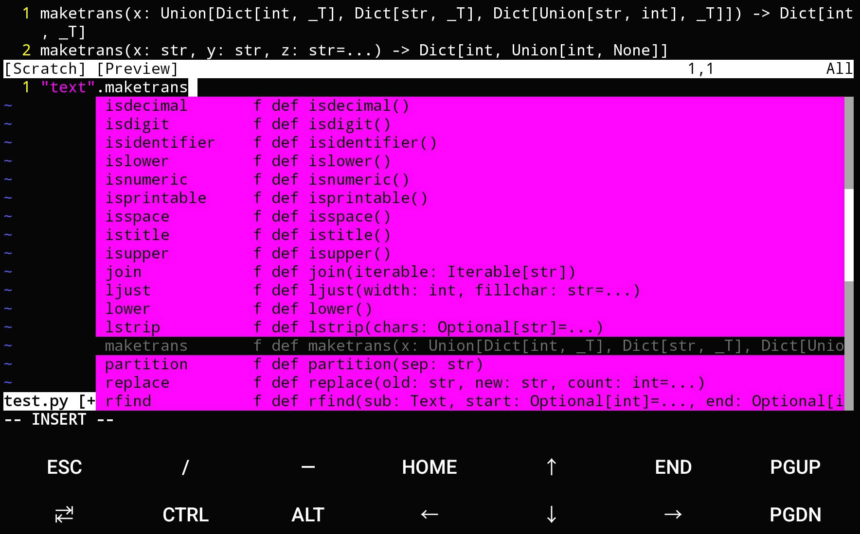 그러나 한 가지 아쉬운 점이 있다. PC에서 VS Code 등 코드 편집기(IDE)를 사용하면서 편리한 코드 자동 완성 기능에 익숙해져 있었는데, Termux에서 Vim으로 코딩을 하게 되면 글자 하나하나 전부 직접 입력을 해야 한다는 점이다.