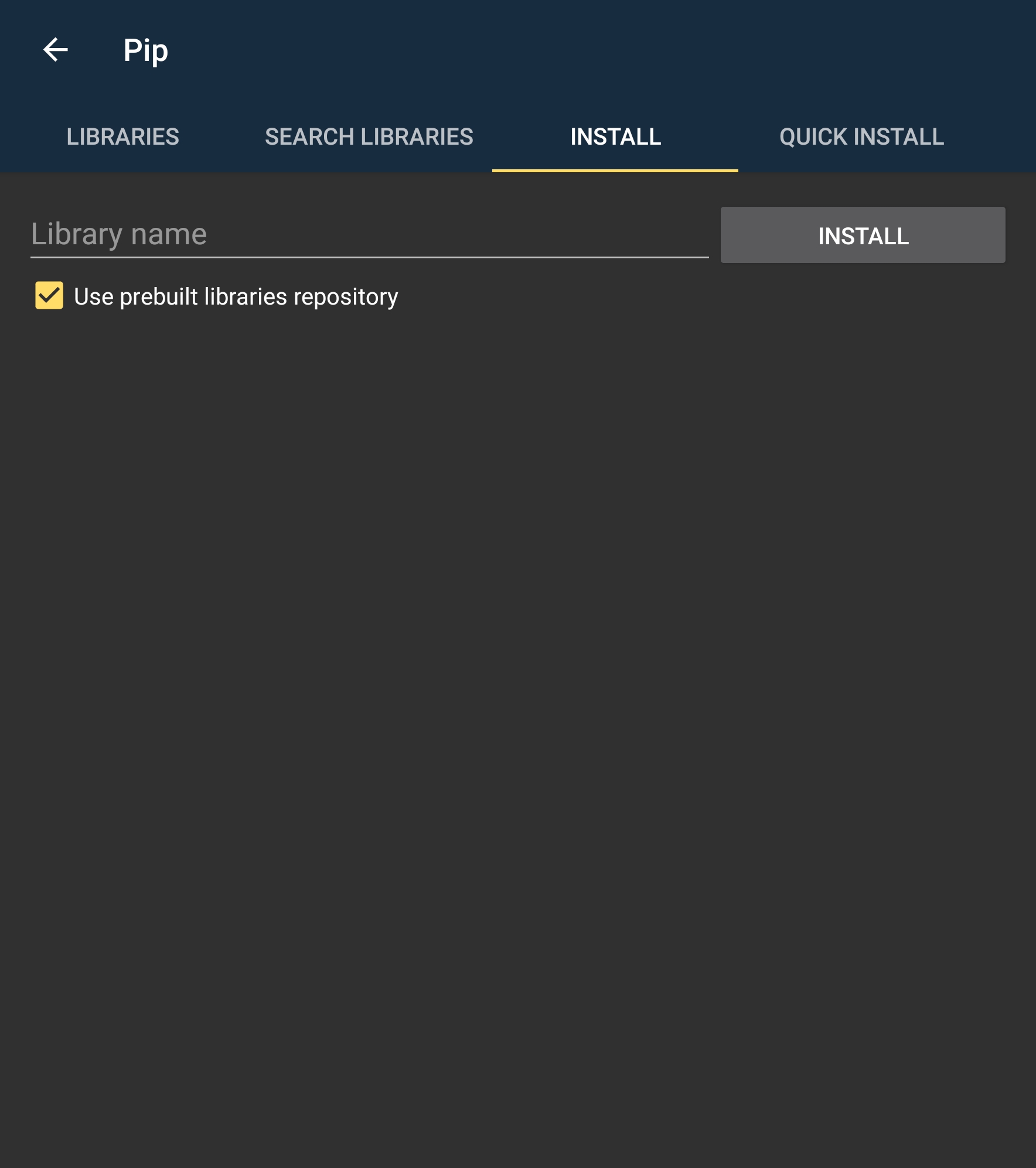 INSTALL 메뉴가 있고, 라이브러리 이름을 입력하라고 나온다.