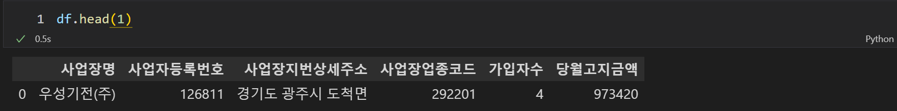 nrows를 0으로 두면 열머리만 불러오고, rows를 1로 두면 샘플 데이터도 함께 볼 수가 있다.